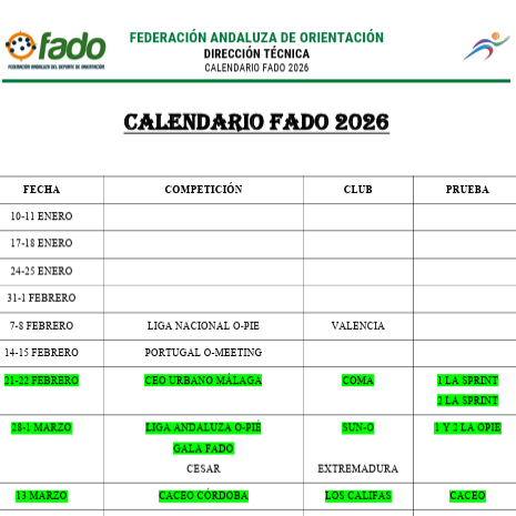 Calendario FEDO 2026
