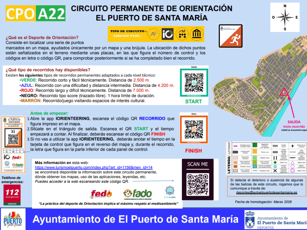 Se han habilitado en el casco urbano de El Puerto de Santa María 7 Circuitos Permanentes de Orientación (CPO) gracias al Ayuntamiento de El Puerto de Santa María, en colaboración con el Club Deportivo Surorientando y la Federación Andaluza del Deporte de Orientación (FADO).